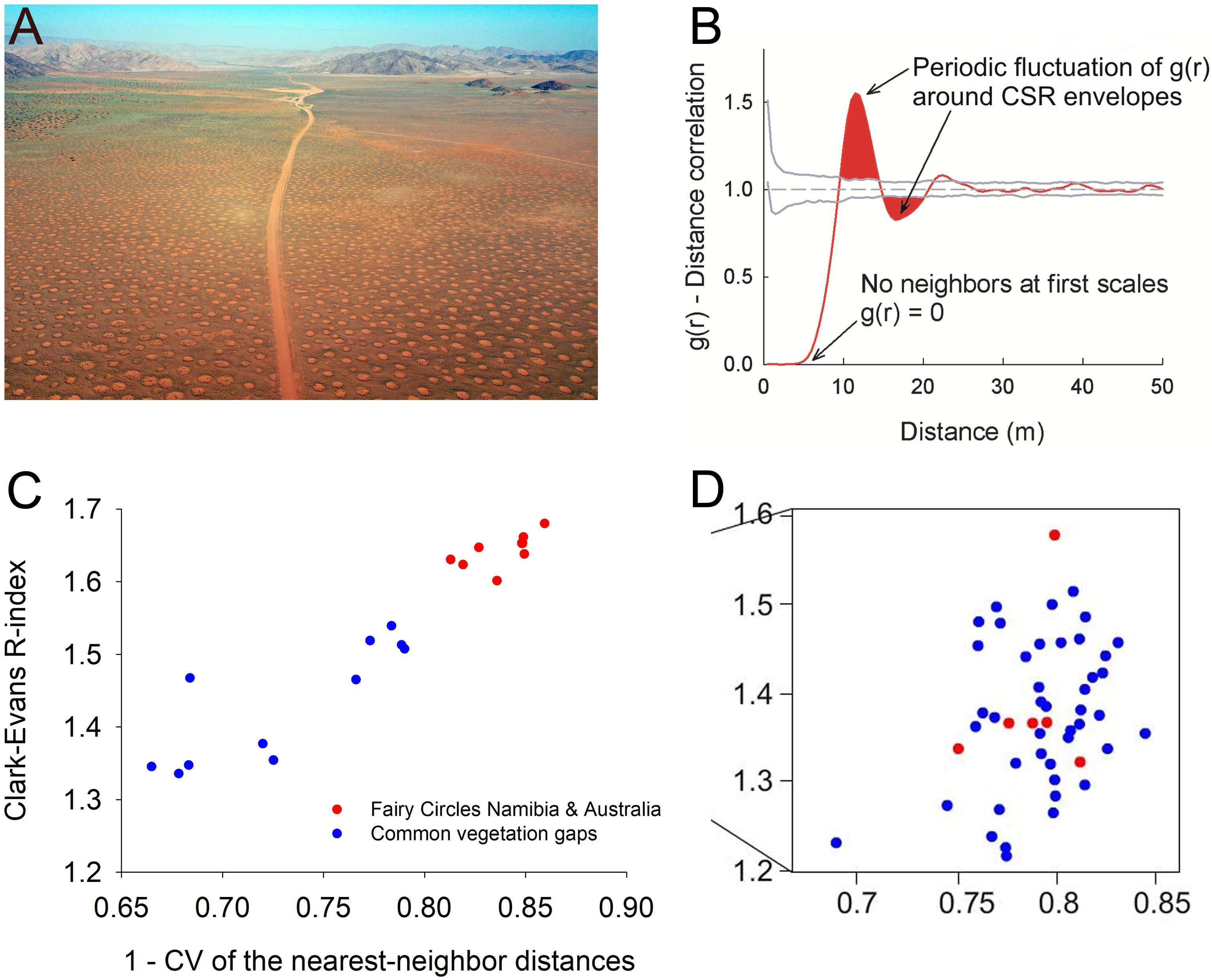 Fairy circles are a unique and globally rare phenomenon because, unlike other common vegetation gaps that are widespread worldwide, fairy circles have specific characteristics that distinguish them from the latter. One of the defining characteristics is their ability to form spatially periodic patterns that are significantly more ordered than an “ordinary” regular pattern. From the 1970s until the year 2014, such fairy circles were only known from the Namib Desert in southwestern Africa. However, when Australian environmentalist Bronwyn Bell sent me aerial photos of similar-looking fairy circles near the town of Newman in the Pilbara region of Western Australia, we immediately flew there and thoroughly investigated these vegetation gaps on site in December 2014.